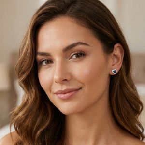 Носете елегантността на чистата емоция със себе си по всяко време. Тези изящни обеци с форма на сърце крият тайна: наситено син камък, поставен в двойна прегръдка от искряща бяла светлина.