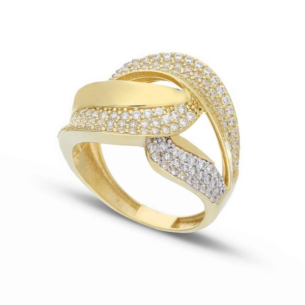 Комбинацията от топло жълто злато с елемента от бяло злато добавя изискан контраст, а течните извивки на пръстена символизират безкрайна елегантност.