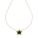 Nebeská elegance, která září kolem krku: Tento elegantní 18k žlutý zlatý náhrdelník má exkluzivní hvězdný náhrdelník s intenzivním zeleným malachitem. Přírodní kámen se svými charakteristickými smaragdově zelenými pruhy je perfektně zařízen do hvězdného rámce z lesklého žlutého zlata, který zvyšuje jeho záhadnou krásu.