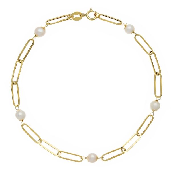 Tento výjimečný náramek kombinuje teplý lesk žlutého zlata s jemnou krásou perel v moderním a sofistikovaném designu.