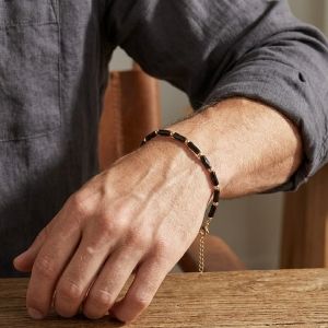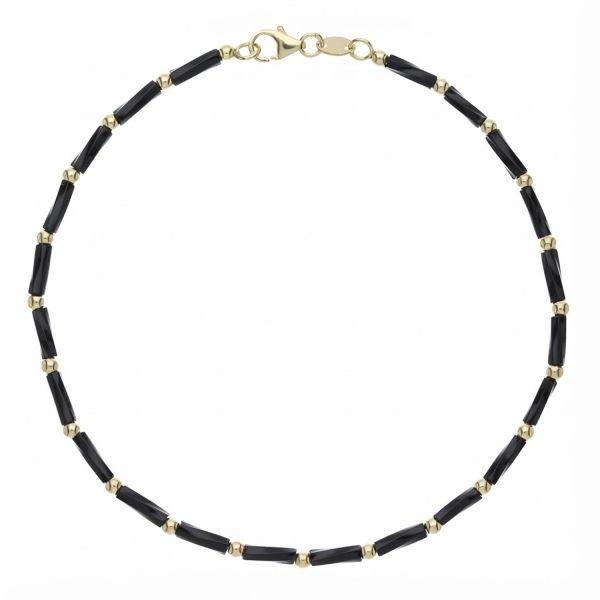 Dette raffinerede unisex-armbånd er et mesterværk af geometrisk design, hvor den varme glans fra kuglerne i 18 karat gult guld veksler med elegante sorte rørformede elementer.