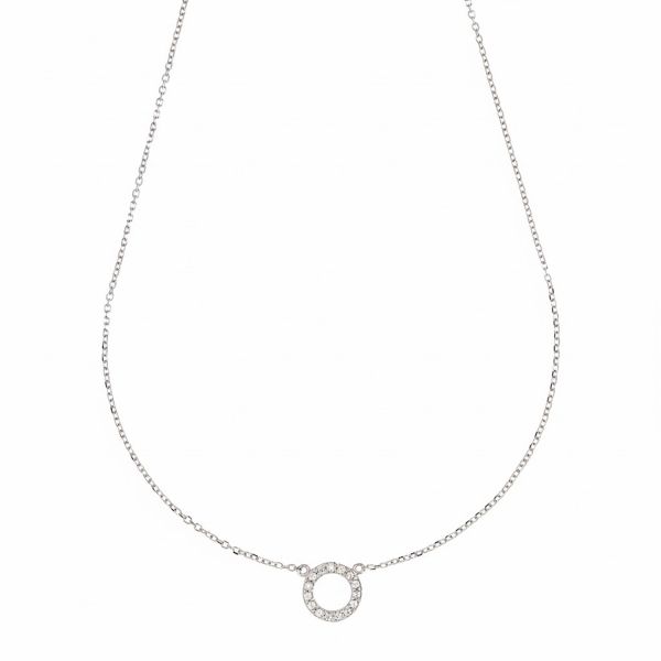 Vedhænget har en gennemboret rund urring, der indrammer en eksplosion af funklende hvide zirkoner.