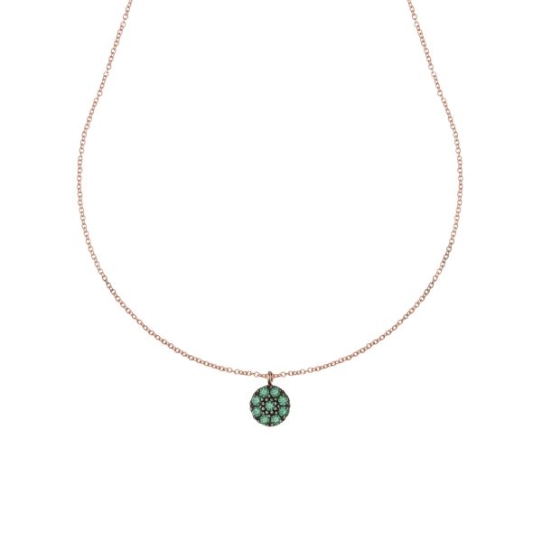 Fang opmærksomheden og oplys din décolleté med denne eksklusive halskæde, der kombinerer sofistikeringen af 18 karat rosaguld med den mystiske charme af grønne zirkoniasten.