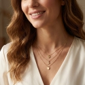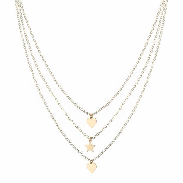 Three gradient threads that slide delicately over the décolleté, alternating the sweetness of the hearts with the vibrant light of the central star.