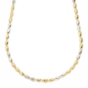 Tämä tyylikäs miehen kaulakoru on hienostunut ja nykyaikainen. Se on valmistettu valkoisesta ja keltaisesta kullasta. Ketju koostuu joukosta vaihtelevia ovalisia kääreitä: jotkut ovat hienovaraisesti valmistettuja raitoilla, kun taas toiset ovat sileitä ja kiiltäviä.