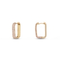 Tyylikkäitä vaaleanpunaisia korvakoruja, joissa on hienoja vaaleanpunaisia sirkoneja. Nämä korvakorut erottuvat hienostuneesta suunnittelusta, jossa on terävä siluetti ja herkkä kiiltävä katse.