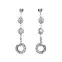Päästäkää itsenne viehättymään näiden 18 karatista valkoisesta kullasta valmistettujen korvakorujen - ajaton tyylikkyys ja tyylikkyys. Tämä hienostunut muotoilu alkaa hienostuneella kiiltävällä pallopainikalla, joka ympäröi pehmeästi lohkoa, ja jatkuu kaksi kiiltävää palloa, jotka peitetään kokonaan valkoisilla sirkoineilla, jotka vangitsevat ja heijastavat valoa tuhansiin säteilyyn.