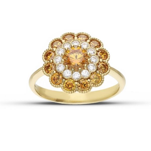 Cette bague en or de 18 carats est vraiment magnifique, avec une composition raffinée de quartz coloré de différentes nuances d'or.