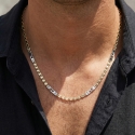 Cette alternance crée un contraste visuel et tactile agréable. Le collier a un look léger mais robuste, idéal pour un usage quotidien ou pour des occasions spéciales. Sa longueur est appropriée pour s'adapter confortablement sur la poitrine, ajoutant une touche de style à n'importe quelle tenue masculine.