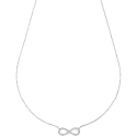 Le pendentif délicat sous la forme d'un symbole infini, universel d'éternité et de possibilités illimitées, est agrémenté d'un médium pavé de zircons blancs qui capturent et reflètent la lumière avec un éclat extraordinaire. La mince chaîne d'or blanc complète le design avec sa légèreté, permettant au symbole infini de fluctuer gracieusement sur le décolleté, créant un effet d'élégance lumineuse. Parfait pour l'usure tous les jours ou pour des occasions spéciales, ce collier est un bijou intemporel qui correspond à chaque style et personnalité.