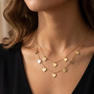 Les petits cœurs finement ouvragés, suspendus à votre décolleté, dansent délicatement au rythme de chacun de vos gestes, soulignant votre décolleté d'une touche de romantisme intemporel.
