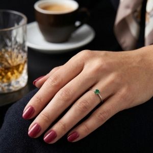 Anello Solitario Oro Bianco 18k con Pietra Verde