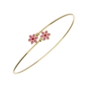 Il design minimalista ed elegante presenta un sottile cerchio d'oro impreziosito da due deliziosi fiorellini smaltati in tonalità rosa e fucsia.