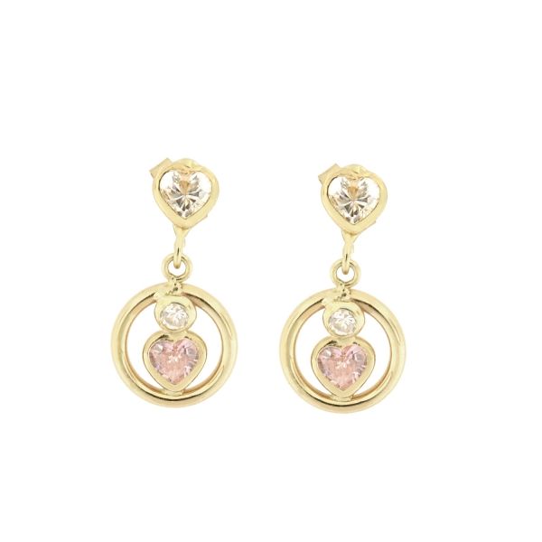 Aggiungi un tocco di eleganza romantica al tuo look con questi splendidi orecchini pendenti. Realizzati in prezioso oro giallo 18 carati, questi orecchini presentano un design unico che combina la raffinatezza di un cerchio lucido con la dolcezza di un cuore rosa.