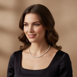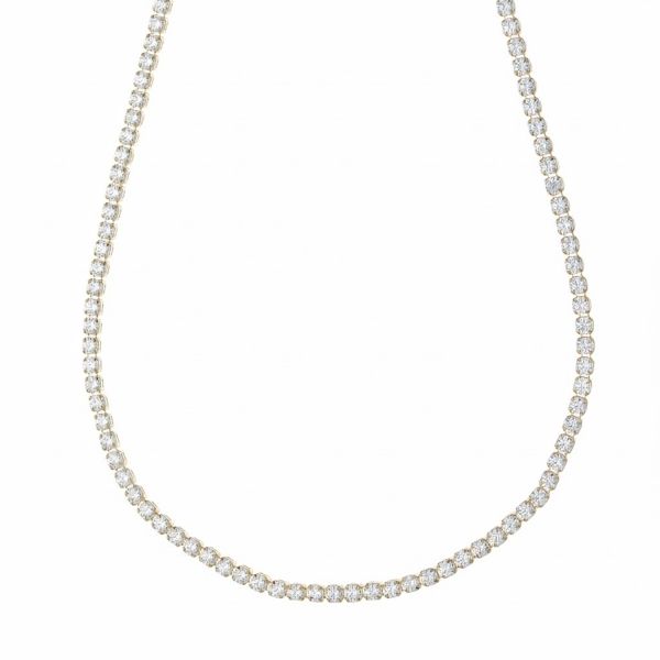 მთლიანად ძვირფასი 18-კარატიანი ყვითელი ოქროსგან დამზადებული ყელსაბამი წარმოადგენს მბზინავი თეთრი ცირკონიუმის უწყვეტ რიგს.