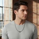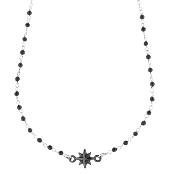 Šis išskirtinis kaklaraštis yra pagamintas iš 18 karatų balto aukso grandinės, išmintingai papuoštas juodais šviesais ir kontrastais.
