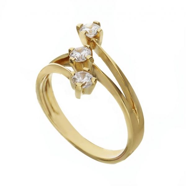 Triloģisks sieviešu gredzens no 18 K dzeltena zelta ar baltiem cirkoniem