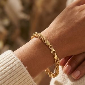Omhul uw pols met pure luxe. Deze prachtige armband, vervaardigd uit fijn 18-karaats geelgoud, is meer dan zomaar een sieraad; het is een statement piece.