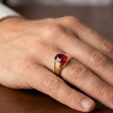 18 Kt 750/1000 geelgouden ring met gepolijste rode steen voor heren