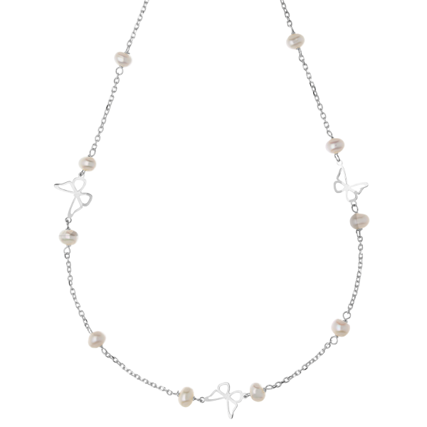 Dette er eit smykke som hyllar kvenlegheit i alle høve, og som kombinerer renleiken frå perlene med den elegante, naturfulle farglosa, som er eit symbol på forandring og frihet.