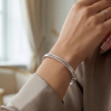 Bransoleta charakteryzuje się sztywną konstrukcją i została ozdobiona wyrafinowanym greckim kluczem ciętym laserowo, który nadaje jej lekkości bez uszczerbku dla solidności szlachetnego metalu.