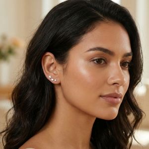Te kolczyki w kształcie gwiazdek zostały zaprojektowane tak, aby płynnie „wspinać się” po płatku ucha, tworząc spektakularny efekt bez potrzeby dodatkowego przekłuwania.
