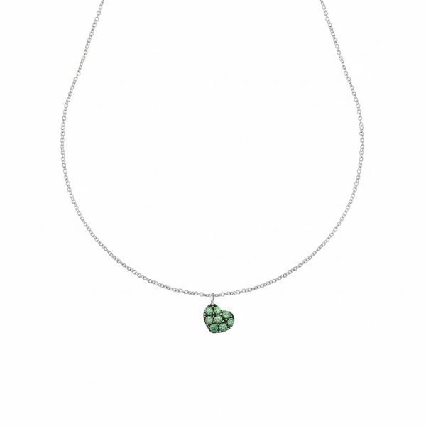 Ten zachwycający wisiorek w kształcie serca został wykonany z cennego 18-karatowego białego złota, którego ciepły, romantyczny odcień idealnie podkreśla intensywna zieleń cyrkonii osadzona w oprawie pavé.
