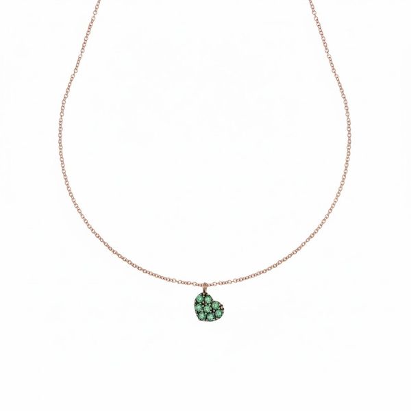 Ten zachwycający wisiorek w kształcie serca został wykonany z cennego 18-karatowego różowego złota, którego ciepły, romantyczny odcień idealnie podkreśla intensywna zieleń cyrkonii osadzona w oprawie pavé.