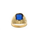 Męski pierścionek z 18-karatowego żółtego złota 750/1000 z owalnym niebieskim kamieniem i bocznymi dekoracjami
