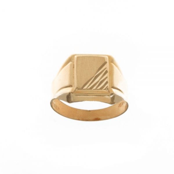 Anel em ouro amarelo de 18 Kt 750/1000 com decorações em base retangular para homem