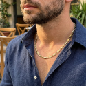 Redescubra o charme atemporal do ouro amarelo com esta corrente masculina de design estruturado.