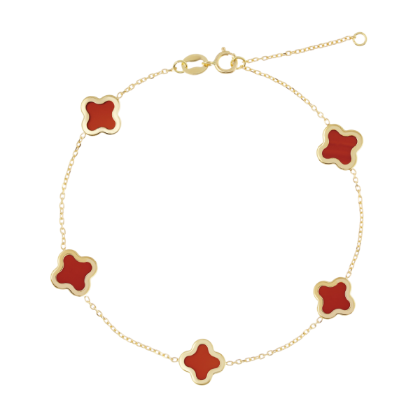 Această brățară rafinată reprezintă echilibrul perfect dintre eleganță și simbolism, o creație de bijuterii de înaltă calitate care captează imediat atenția. Realizată în întregime din aur galben de 18 carate, bijuteriul prezintă cinci frumoase cvadrifolie, recunoscute universal ca simboluri puternice ale norocului și prosperității.