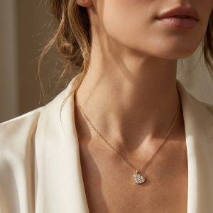 Delicatul pandantiv în formă de inimă este înfrumusețat cu un pavé de zirconiu alb selecționat, montat manual pentru a surprinde fiecare reflexie a luminii și a oferi o strălucire extraordinară decolteului.