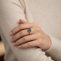 Designul sinuos și învăluitor adăpostește un magnific zirconiu albastru, care captează lumina cu o strălucire hipnotică.