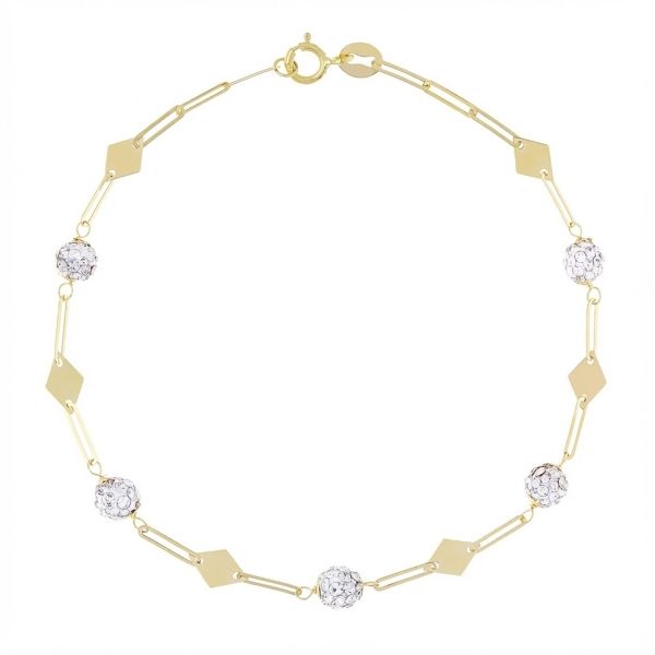 Классическая удлиненная цепочка звеньев охватывает изящные бриллианты из смолы, которые придают изделию уникальный и геометрический характер, чередуясь со сферами, усыпанными сверкающими белыми цирконами.