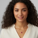 Tento úžasný prívesok v tvare srdca je vyrobený z drahocenného 18-karátového ružového zlata, ktorého teplý, romantický odtieň dokonale umocňuje intenzívne pavé s červeným zirkónom.
