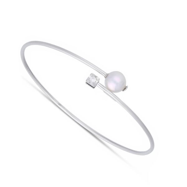 Tento náramok z 18-karátového bieleho zlata je stelesnením modernej elegancie. Na jednej strane zamatový lesk prírodnej perly, symbolu nadčasovej triedy, a na druhej strane brilantný lesk zirkónu, ktorý zachytáva každý lúč svetla.