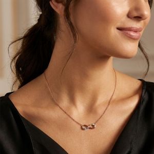 Detta raffinerade halsband i 18 karats roséguld omtolkar den klassiska oändlighetssymbolen och utsmyckar den med en sekvens av flerfärgade ädelstenar som fångar varje reflektion.