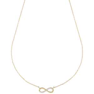 让自己被这精炼的18K黄金项链征服吧,其中贵金属的温暖将无限人的象征在光和意义的拥抱中升华. 微妙的圆柱形,永恒的徽章和无尽的可能性,被闪耀于每一次运动的白色 的巴韦介质所装饰,与金色的亮度形成了一个迷人的对比.